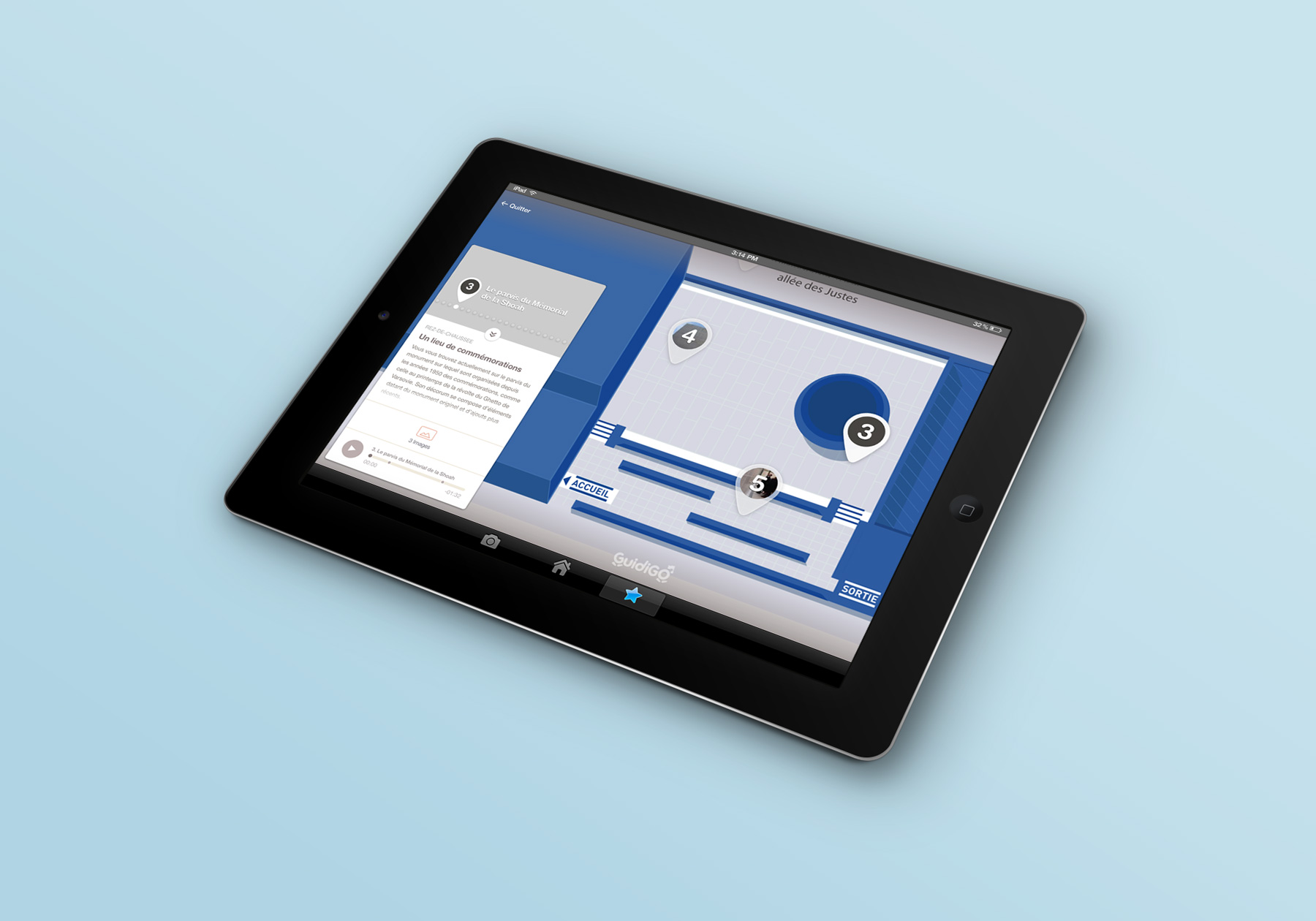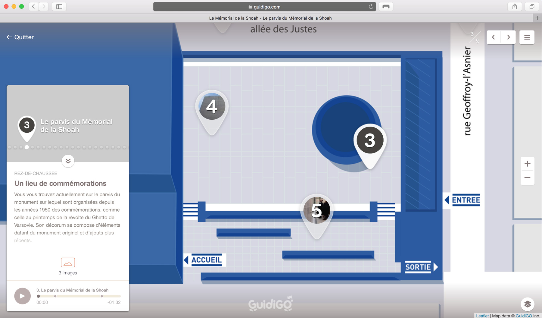 Map design for the Guidigo application of the Mémorial de la Shoah.