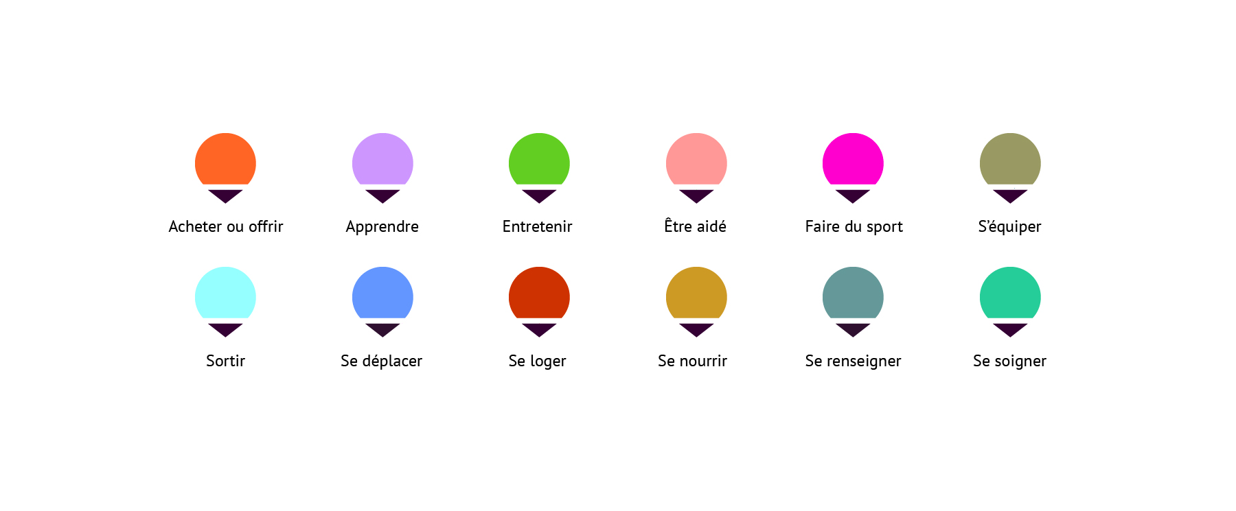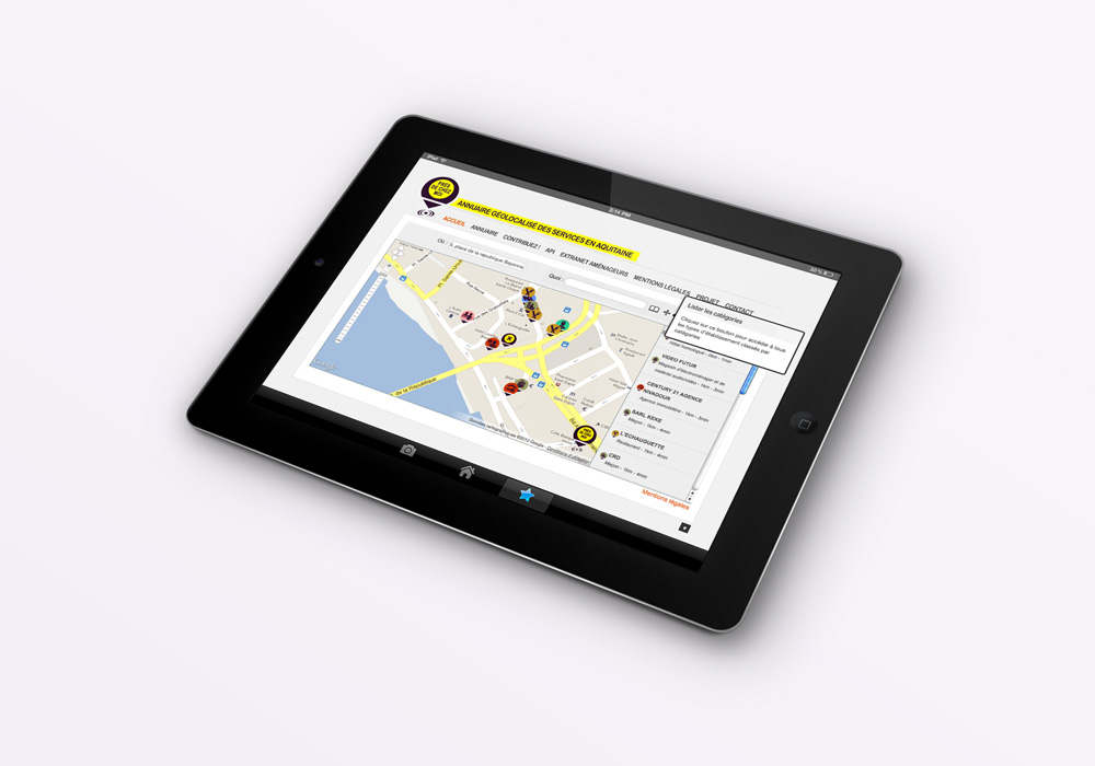 Logo et icones pour le projet de géolocalisation "Près de chez moi", de la Région Aquitaine et l'Université Bordeaux 3.